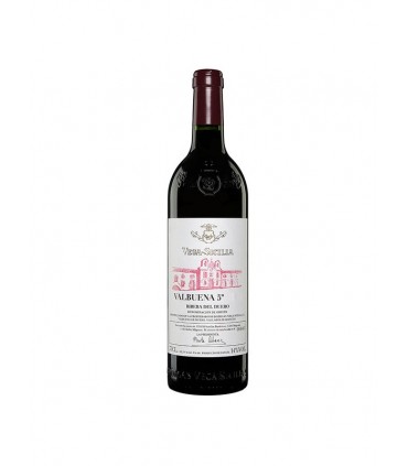 D.O. Ribera del Duero. De Bodegas Vega Sicilia. Valbuena 5º Año 2014 es la expresión más pura del tinto fino y representa la línea más moderna de la Bodega. De color rojo burdeos con ribetes cardenalicios. Aromas potentes a frutas rojas maduras, suaves aromas de roble y toques balsámicos. En boca sedoso, envolviendo la boca de intensidad y vainilla. Textura muy refinada y final de cassís. Para maridar con sopas, verduras, aves, caza, guisos, estofados y cordero.