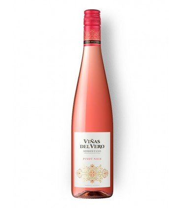 Viñas del Vero Pinot Noir rosado 2021. 100 % Pinot Noir. D.O. Somontano. De color rosa pálido, muy limpio, presenta aromas frutales muy finos. Suave y redondo en boca. Para acompañar todo tipo de aperitivos y arroces.